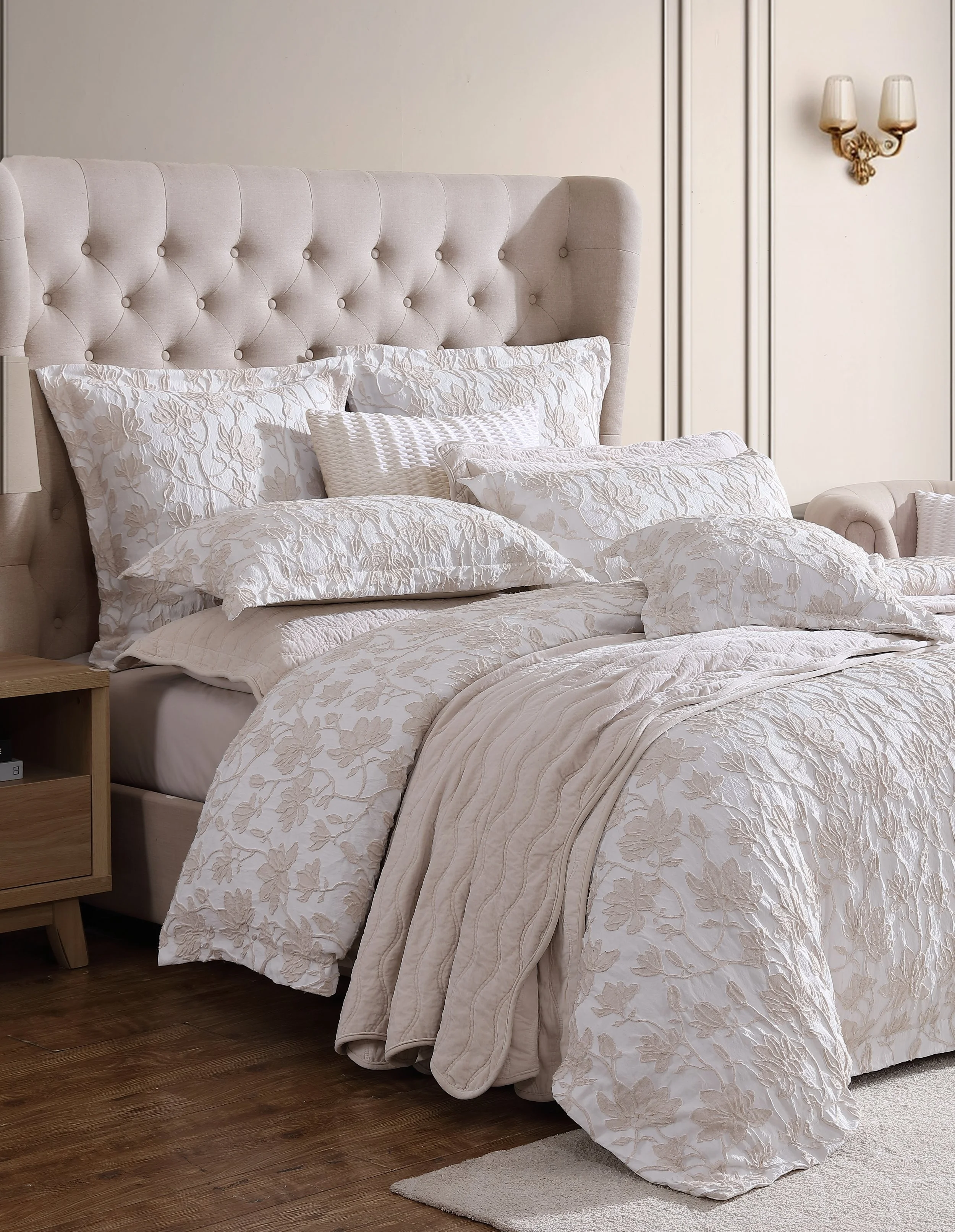 Introducing Bloom, a quilt cover that seamlessly blends soft elegance with a touch of modern flair. Embrace the essence of spring and summer with this classic floral design, featuring muted pastels that evoke a sense of freshness. Crafted for style and comfort, Bloom adds a timeless charm to your bedroom and brings the beauty of blooming flowers into your bedroom.